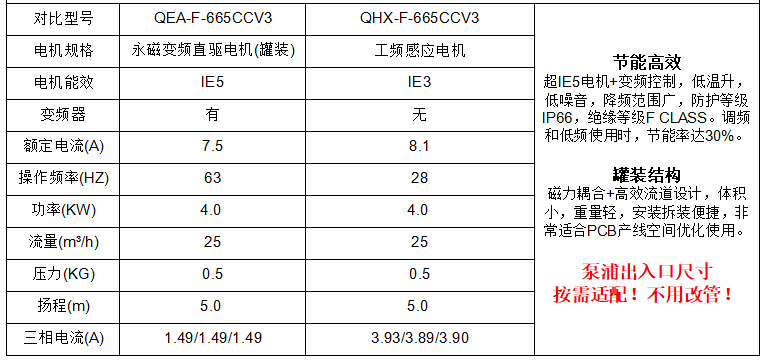 2024年企华实验室对比测试显示,永磁罐装磁力泵QEA-F-665CCV3在降频至63HZ时,达到工况点参数,相比于传统工频感应磁力泵QHX-F-665CCV3,其节能率达到31%。
