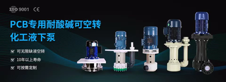 企华化工立式液下泵专门为PCB高压水洗线、微蚀清洗线、电镀前处理等工艺段高频使用需求量身定制,产品型号涵盖QHA(槽内)立式液下泵、QHD(槽外)立式泵、QRHS显影泵、QYP喷砂泵和QYX消泡泵等多个系列,具备耐强腐蚀,可365天无限缺液空运转、振动小噪音低和压力流量稳定等优势,同时能应对封装载板与高阶PCB的性能要求。
